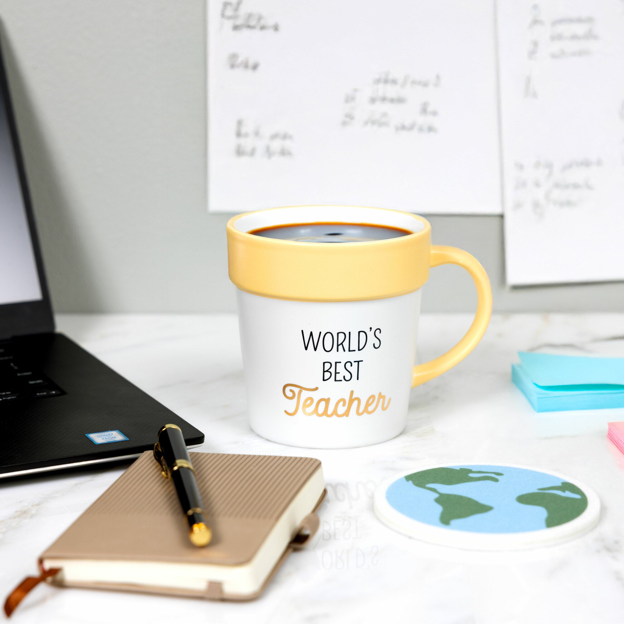 • IN-HOUSE DESIGN: From the Teachable Moments collection, this set showcases the sentiment “World’s Best Teacher” with matching artwork across the mug and globe-themed coaster. Soft tones of blue, green, and yellow combine to create an uplifting design that honors educators who change the world—one student at a time.