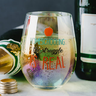 Homeschool Day 1 18 oz Stemless Wine Glass