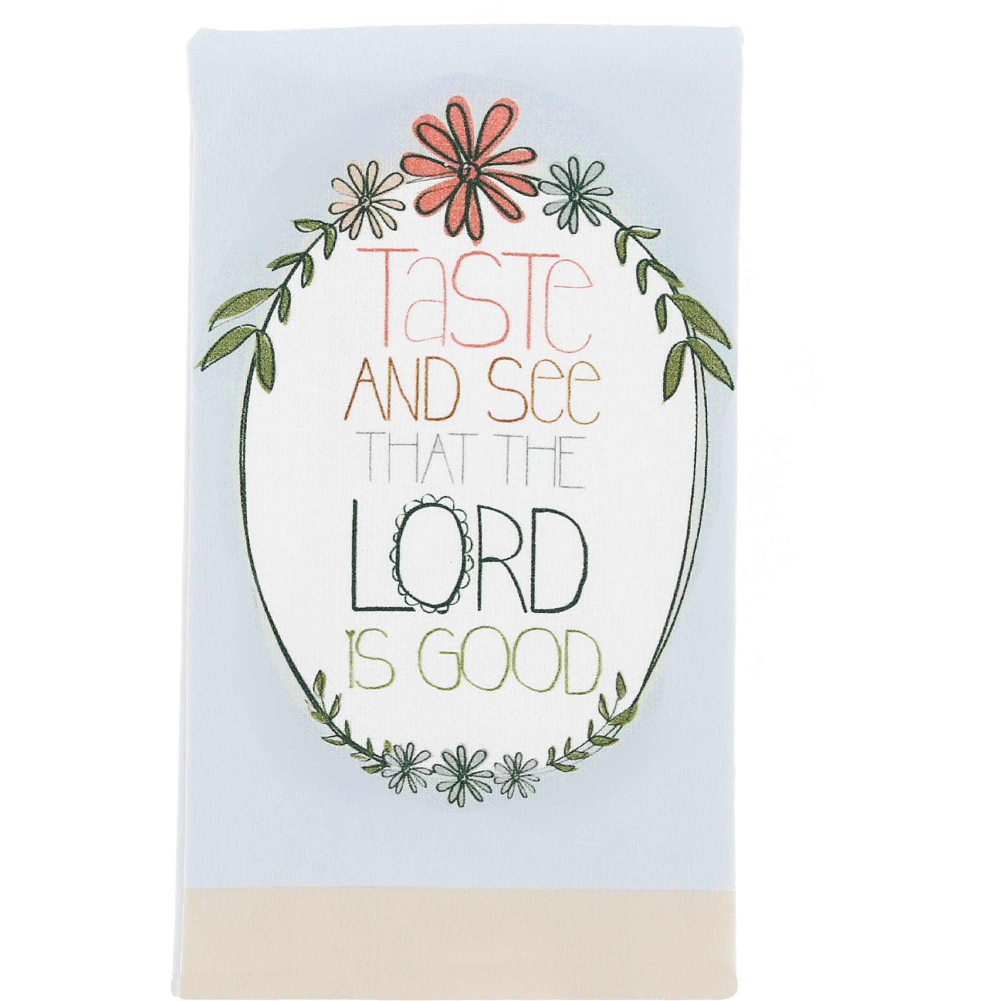 - IN-HOUSE DESIGN: Beautifully printed with the uplifting message, "Taste and see that the Lord is good," this towel features a soft floral frame that complements the inspirational quote. The pastel colors and delicate design bring a serene and welcoming touch to any faith-inspired kitchen, reminding you of gratitude and blessings each time you see it. The intricate floral details around the text add a charming element, making this towel a lovely decorative piece as well as a functional one.