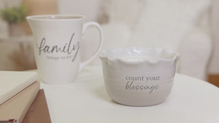 • IN-HOUSE DESIGN: The new & innovative candle offers a unique message for your loved one within the wax as time progresses. You will see cursive written "Beyond Blessed" sentiment after about 10 minutes. As you watch, the entire decal will appear after 60 minutes. Then, the message will hide again and reappear with each burn. The front of the candles has a simplistic "Count Your Blessings" decal accompanied by an Ombre white & gray pattern.