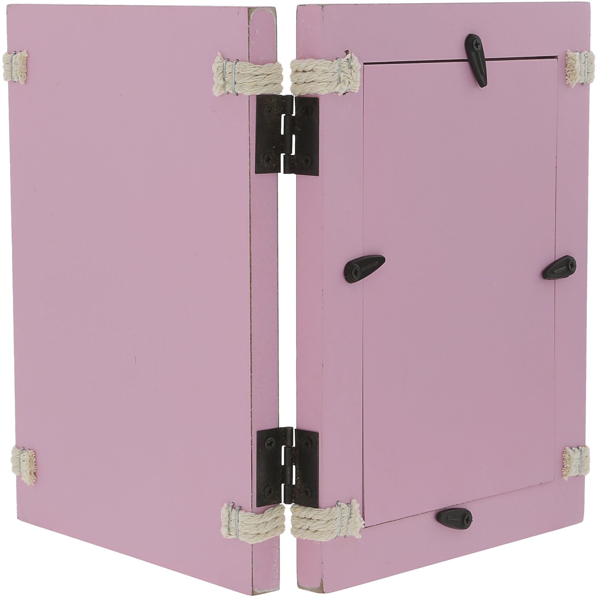- PREMIUM QUALITY: 5.5" long (per each side - total 11.25") x 7.5" tall x 0.5" wide self-standing black metal hinged picture frame plaque constructed from MDF has a glass photo holder opening with light tan jute rope, consisting of a triple intertwined design above and below the picture opening, stapled onto the back of the frame. The backside features four turn tabs to remove the backing to place your favorite memories easily inside. The neutral, soft, baby pink & white weathered finish fits a rustic or modern style.