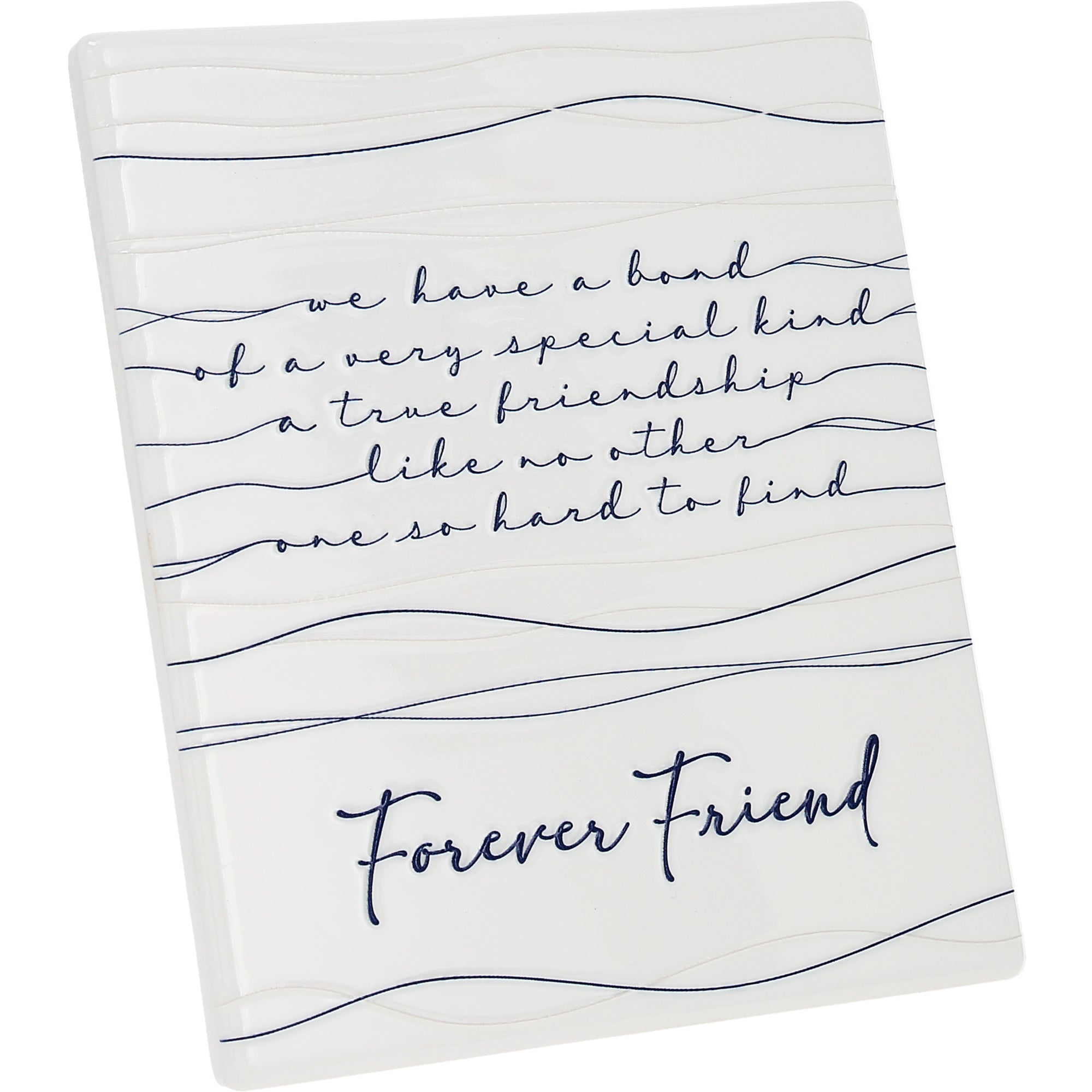 - IN-HOUSE DESIGN: The design features gentle navy linework that mimics flowing string, wrapping around the handwritten-style message: “We have a bond of a very special kind, a true friendship like no other, one so hard to find.” Below, the words “Forever Friend” are printed in deep blue raised lettering for contrast and emotional emphasis.
