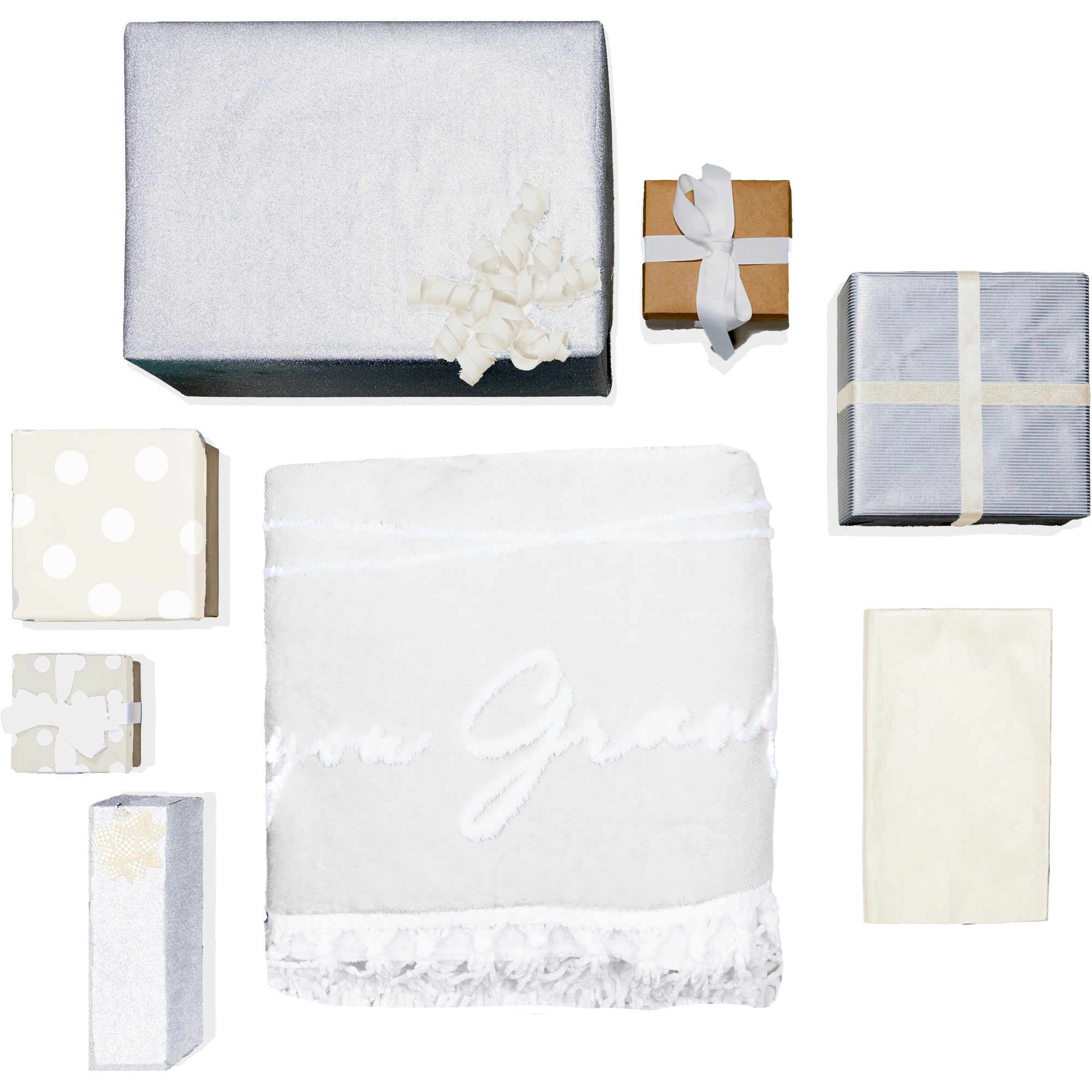 - PREMIUM QUALITY: 50" long x 60" tall and .5" wide premium throw is made from 400 GSM, 100% polyester plush jacquard with thirty-one hand-made knotted tassels at both the top and bottom of each blanket which extends the height of the blanket to 72.5" in total. The excellent packaging consists of a silk white bow-tied ribbon with a gray cardboard band that contains material and sizing information. Attached is a thick paper tag with the entire blanket sentiment. The blanket is neatly folded and securely attached to white wood and a silver metal hook hanger.