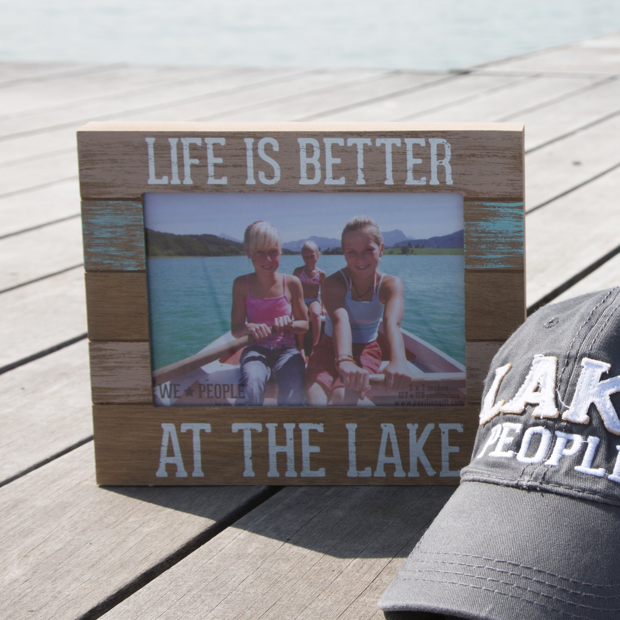 - IN-HOUSE DESIGN: Featuring "Life is Better at the Lake" in bold, distressed white lettering, this frame captures the laid-back, carefree spirit of lake life. The soft aqua and natural wood tones blend seamlessly with nautical, rustic, or cottage-style decor. The text is printed both above and below the photo slot, framing your favorite lake memories with a touch of nostalgic charm. This frame evokes the feeling of sunny days on the water, boat rides, and unforgettable lakeside adventures.