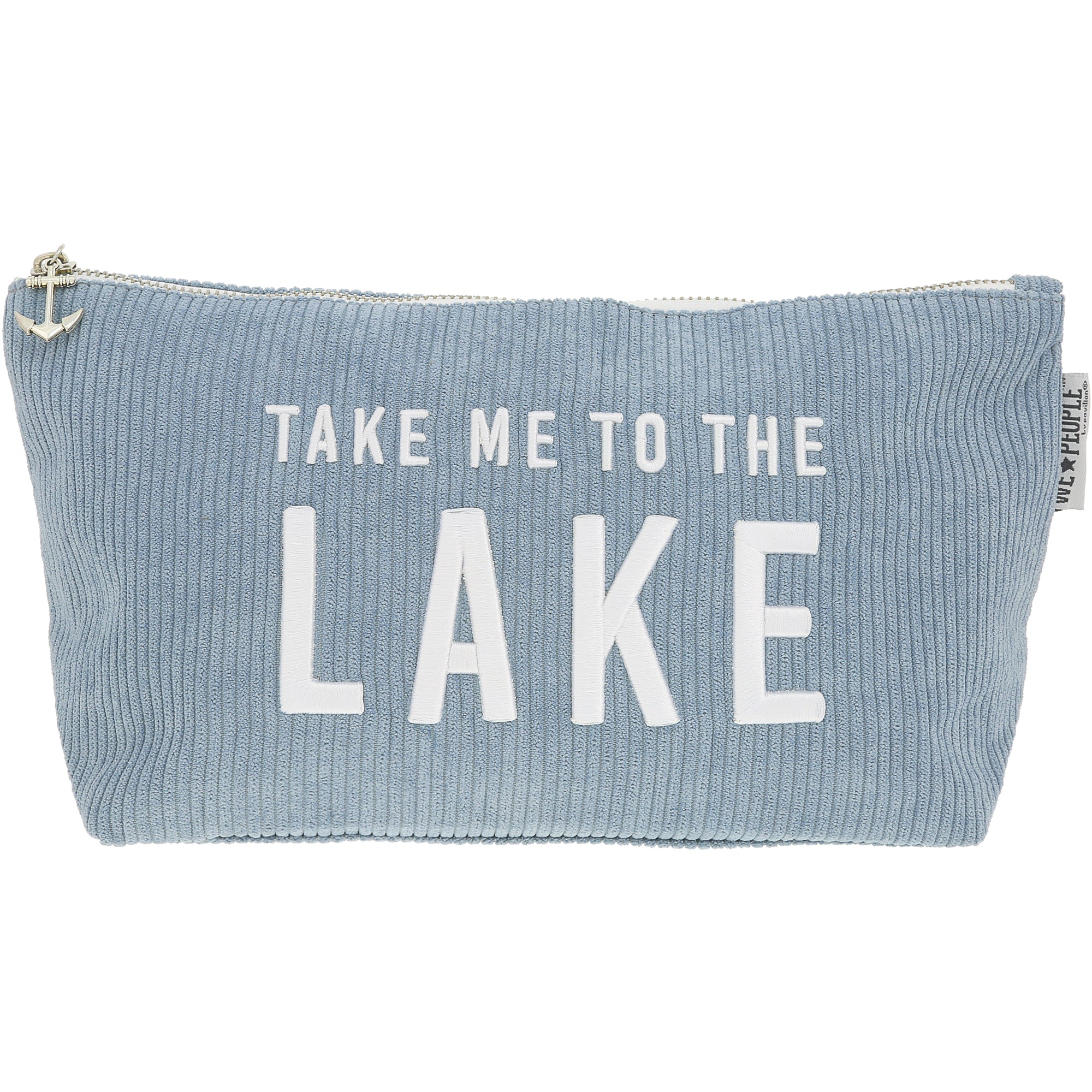 - PREMIUM QUALITY: Made from durable, soft-touch dusty blue corduroy with a full 100% cotton interior lining, this zippered pouch combines casual style with functional design. The silver-tone hardware includes a custom-shaped pull for easy access, and the interior reveals a playful anchor pattern that complements the embroidered “Take Me to the Lake” text on the front. Sturdy yet lightweight, it’s perfect for storing makeup, travel essentials, or small accessories.