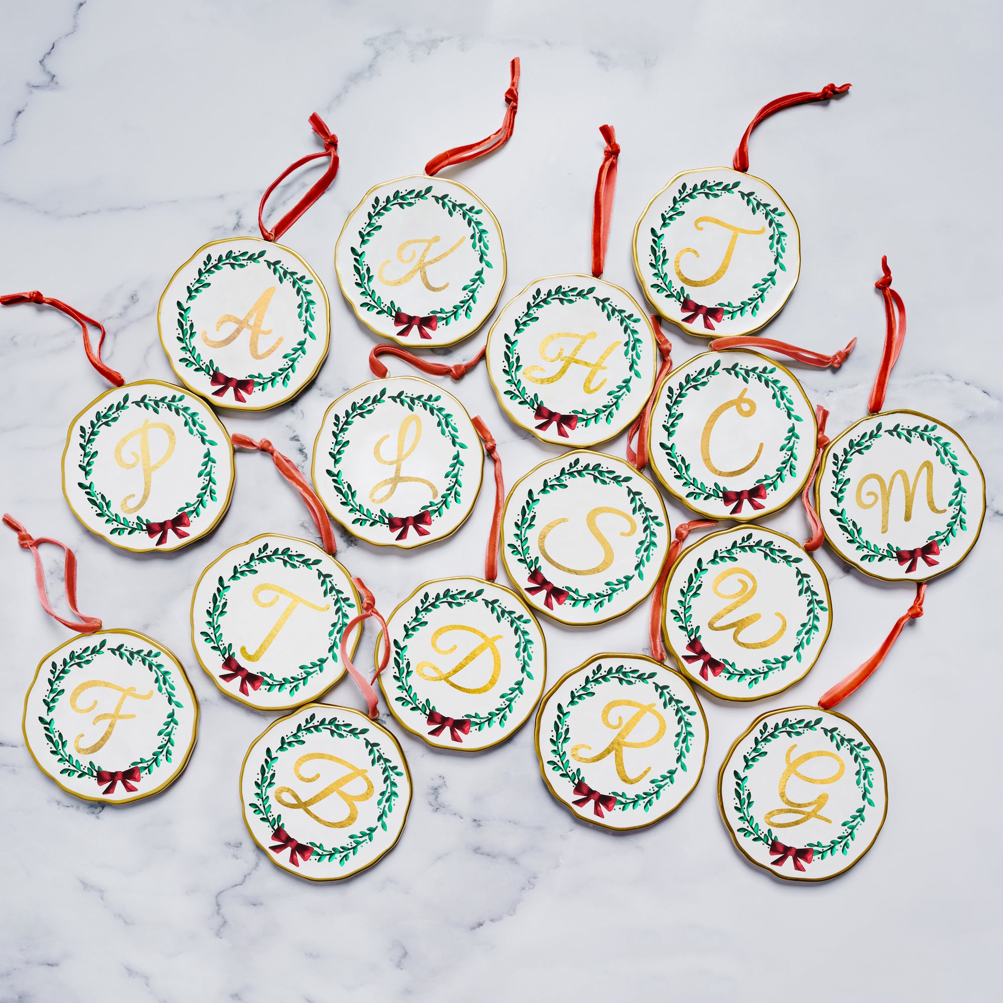- PREMIUM QUALITY: Organic-shaped 4" round porcelain ornament has a removable red velvet ribbon for hanging. Packaged in a holiday striped background, an acetate-covered cardboard box with a gold bow-tie stretchy ribbon makes this a beautiful gift for the holiday season.