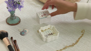 • PREMIUM QUALITY: Jewelry dish, packaged in an open-faced box with a small bow, is made from new bone china.