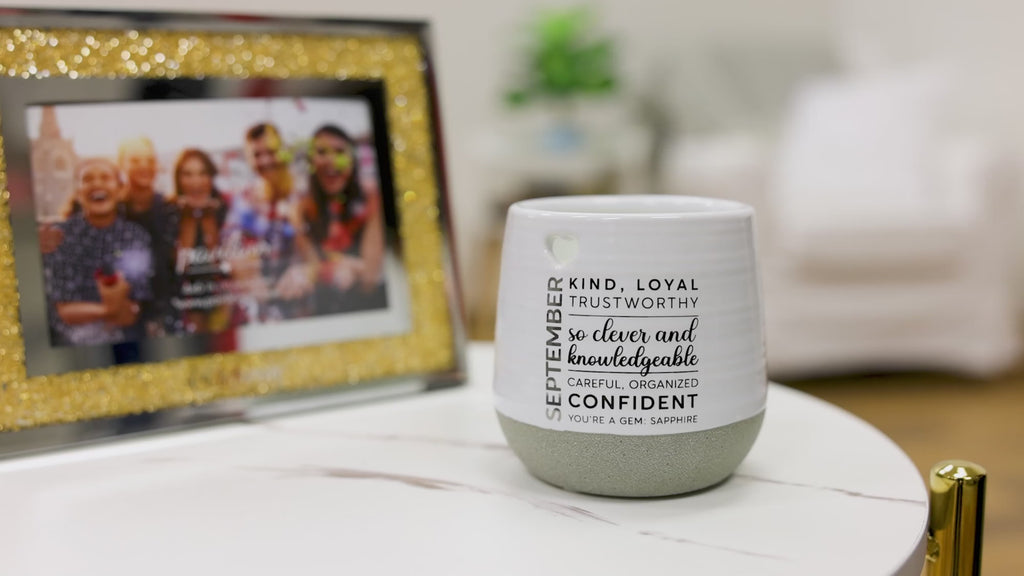 - IN-HOUSE DESIGN: Silver "September" sentiment lines the left side under the heart accompanied by black "Kind, Loyal, Trustworthy, So Clever And Knowledgeable, Careful, Organized, Confident, You Are A Gem: Sapphire" wording to the right, which is centered on the container. The heart inside is blue, and the wax reveals a flowy fabric-like blue image with "May All Your Wishes Come True" wording. The wax reveal begins to show after 10 minutes and is fully visible after 50 minutes of burn time. Overall burn time is 27-30 hours. Always remember to trim your wick down after each burn.