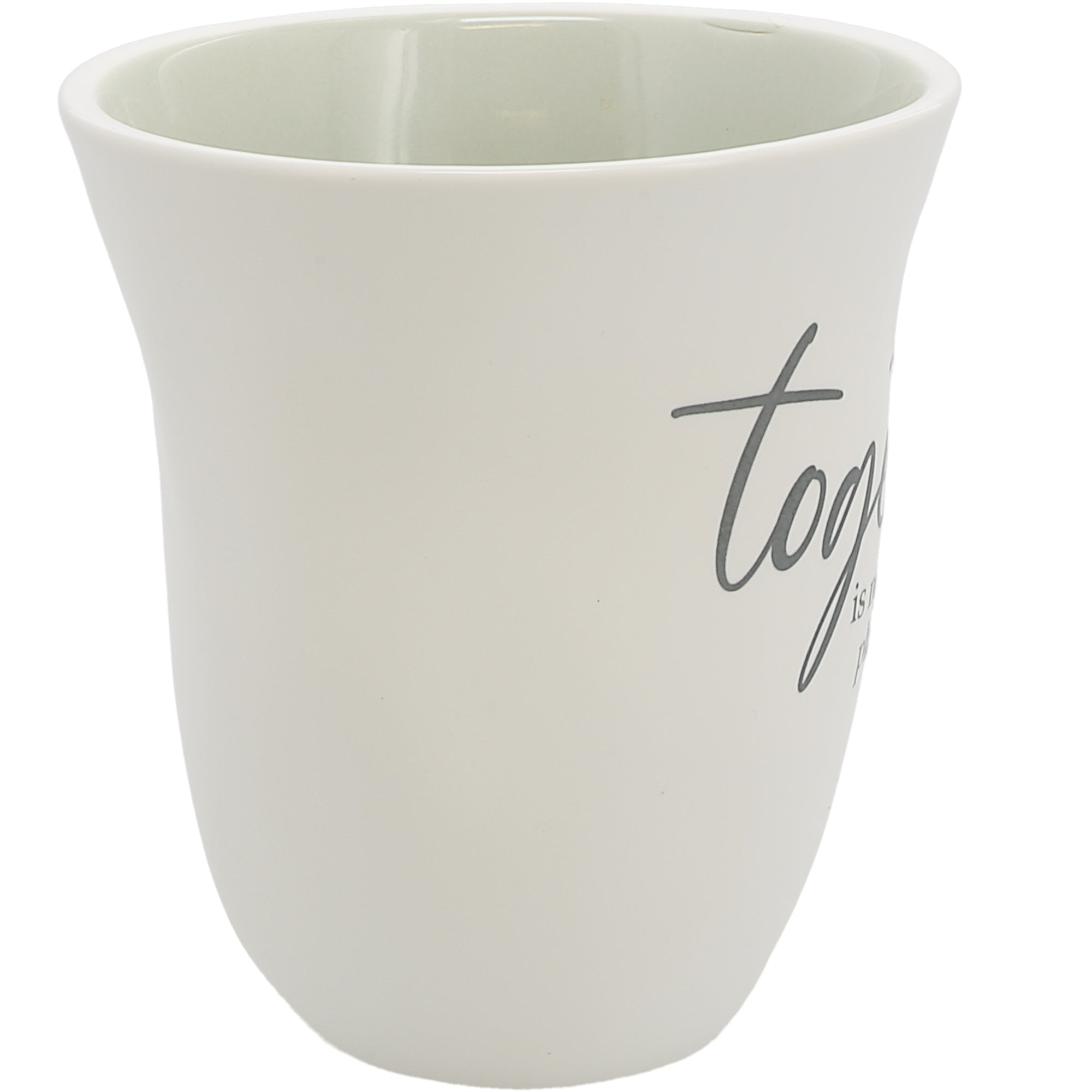 - IN-HOUSE DESIGN: The frontside features "Together Is My Favorite Place To Be" gray raised texture glossy words on the front center of the white cup with a light gray interior.