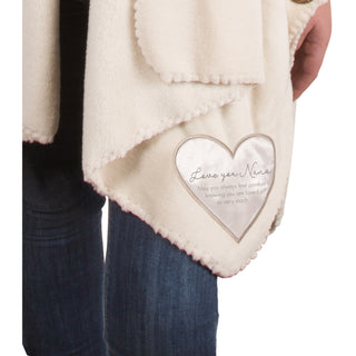 • IN-HOUSE DESIGN: "Love You Nana; May You Always Feel Comfort Knowing You Are Loved So Very Much." text is printed onto the embroidered heart on the front of the shawl.