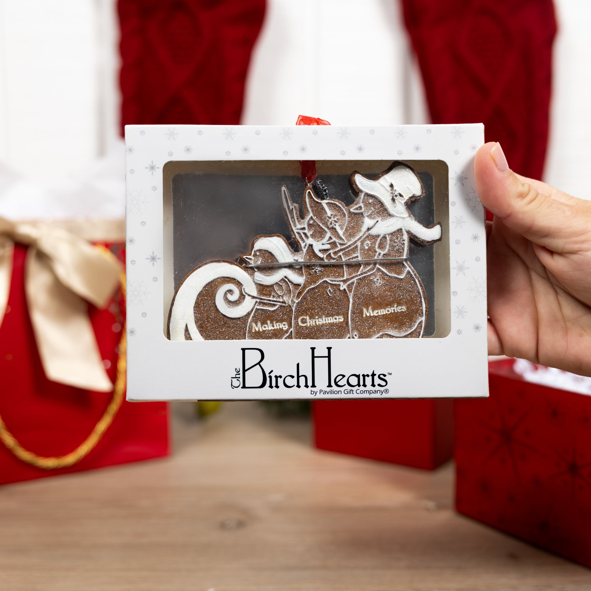 - IN-HOUSE DESIGN: The "Making Christmas Memories" sentiment is debossed and highlighted with white raised "icing" details that give the ornament a gingerbread cookie effect. Two snowmen are seen riding a sleigh, symbolizing the joy and excitement of holiday memories in the making.