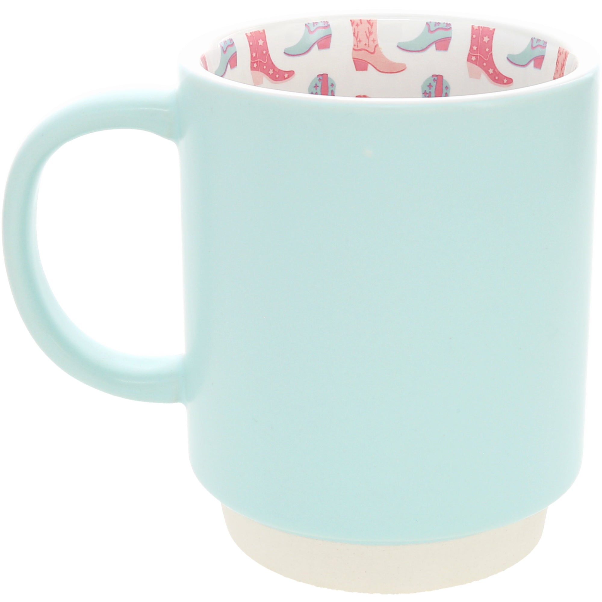 • PREMIUM QUALITY: A sturdy 15 oz stoneware mug featuring a matte mint-aqua exterior, glossy patterned interior, and natural clay-textured base. Built for real-life use, it's dishwasher and microwave safe, FDA and Prop 65 compliant, and perfect for both hot and iced drinks.
