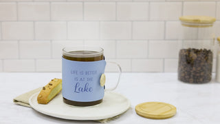 Lake 16 oz Wrapped Glass Mug with Coaster Lid