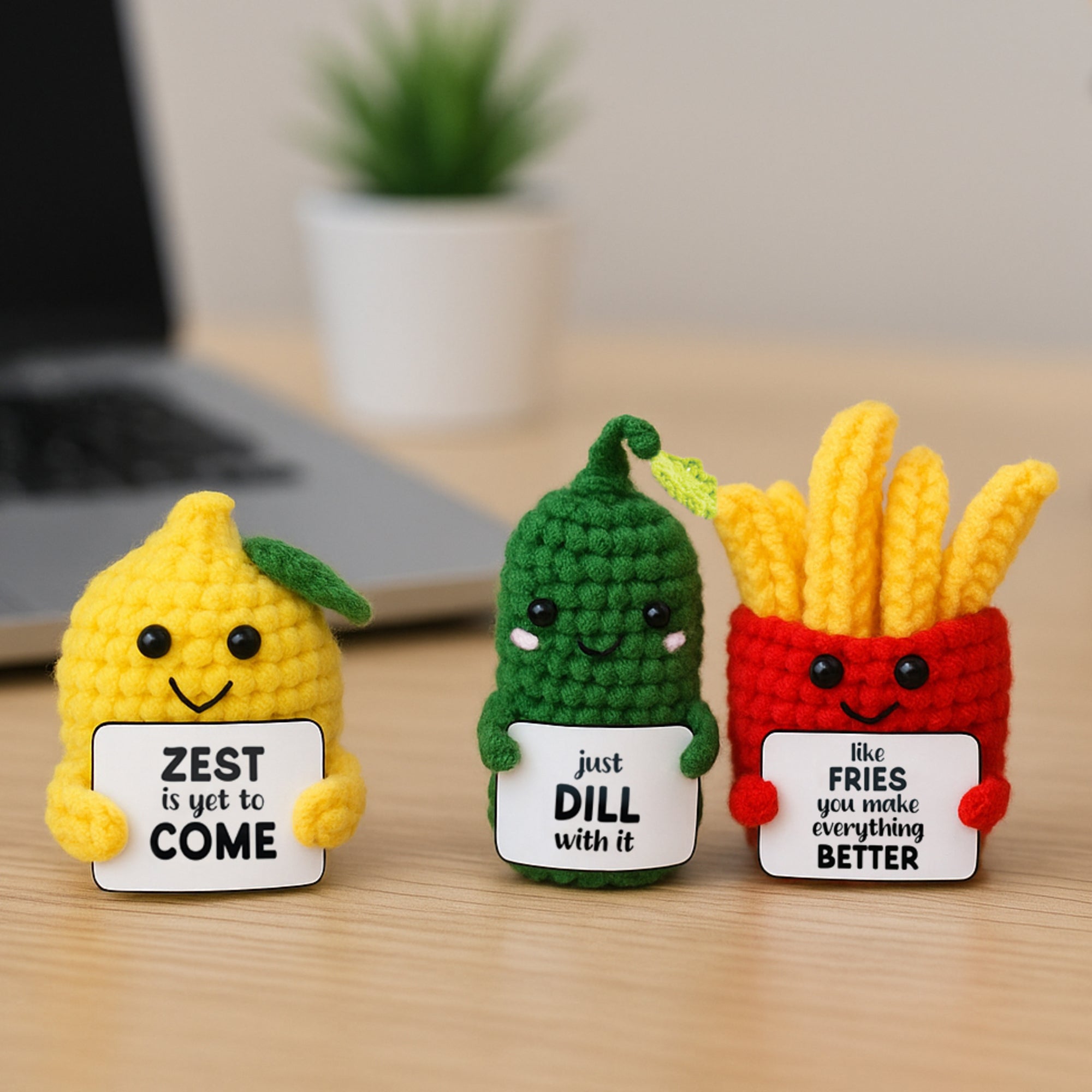 • PREMIUM QUALITY: Crocheted from bright acrylic yarn and filled with plush polyester, this figure offers soft texture and cheerful design. Its bead eyes and crisp white sentiment card are securely attached for durability. Each detail reflects high-quality craftsmanship in a compact, 2.6" x 2.1" form.