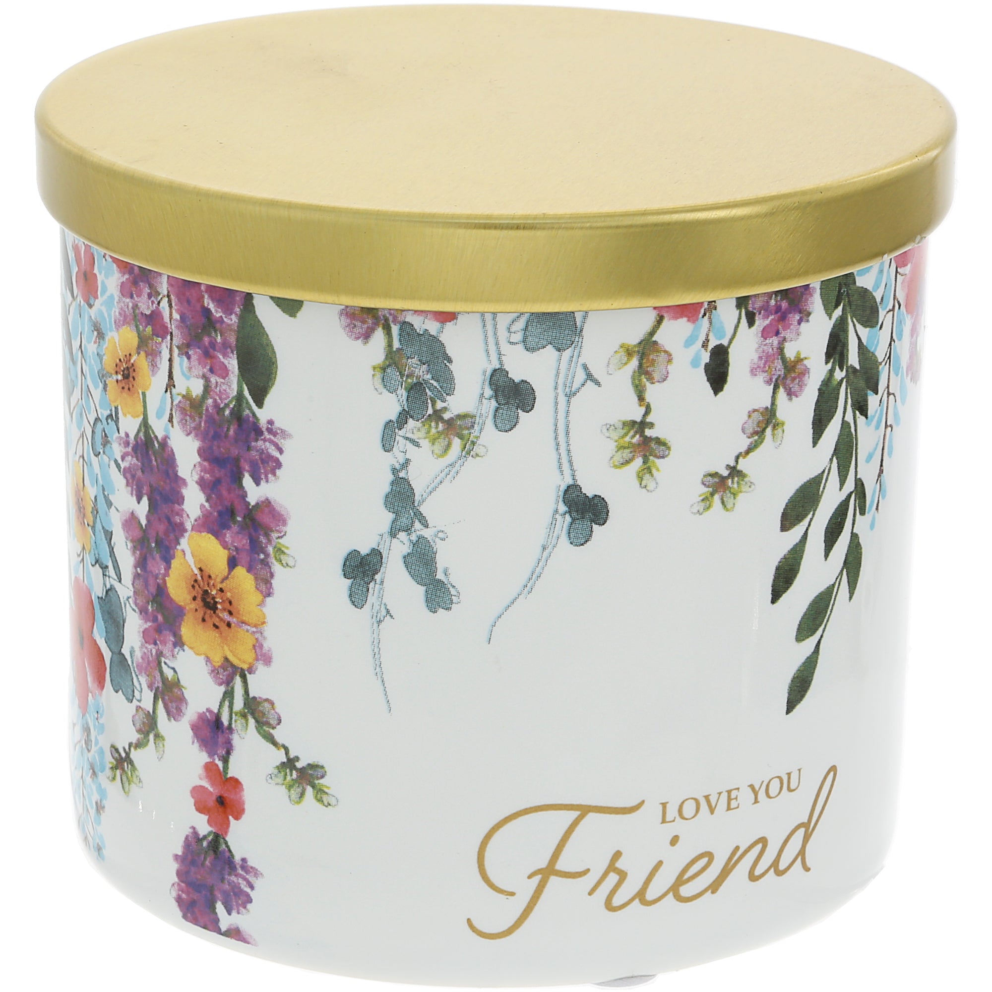 • IN-HOUSE DESIGN: Adorned with delicate floral prints in lively hues, this candle is screen-printed with "Love You Friend" in gold lettering, serving as a meaningful tribute to friendship. The accompanying sentiment card beautifully conveys the joy and appreciation that comes with lifelong friendships.