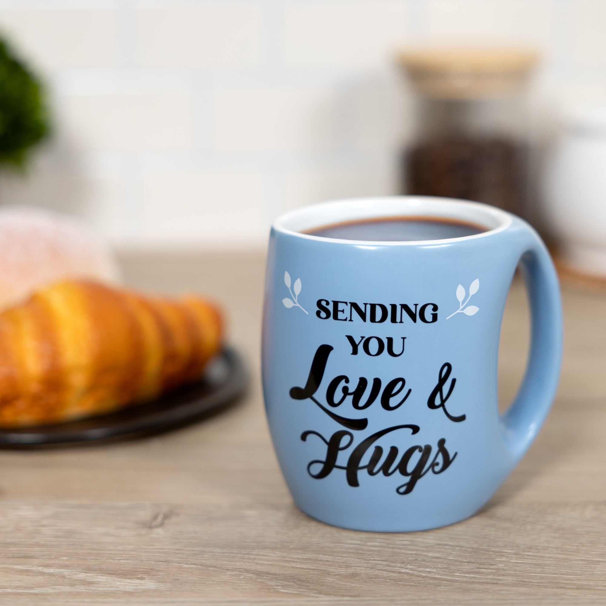 - IN-HOUSE DESIGN: Soft periwinkle blue mug with raised glossy artwork reading “Sending You Love & Hugs,” decorated with delicate leaf accents for a comforting, supportive aesthetic.