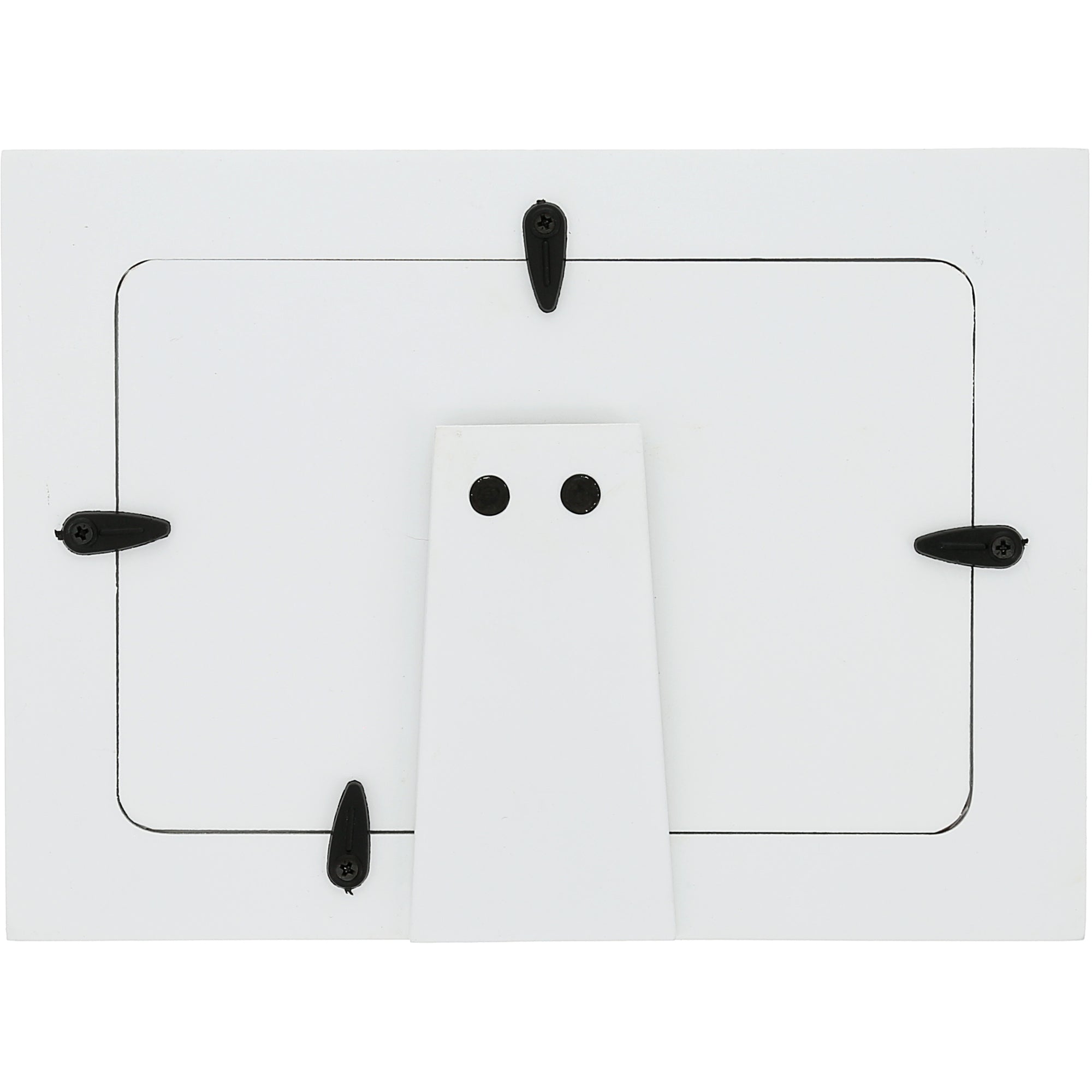 • PREMIUM QUALITY: A 7.5" long x 5.5" tall horizontal easel back rustic whitewashed picture frame holds a horizontal 6" x 4" photograph. The backside is white in color and features four sturdy thick black plastic turn knobs for image replacement. Materials include MDF, glass, and plastic.