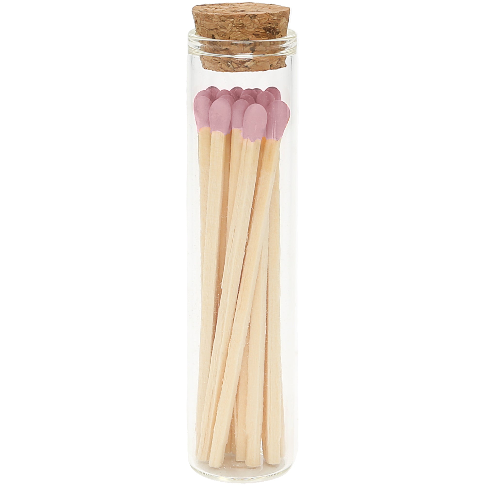 - IN-HOUSE DESIGN: The matte white glass vessel has a stamped beige "Perfect Match" sentiment in the front center. The interior and top third of the match holder are glossy pink. The tips of the 15 light brown matches are pink. The 3.75" cylindrical clear glass container has a gold bunchy tie and a brown craft tag at the top. Reuse the match holder as a tiny treasure keepsake bottle.