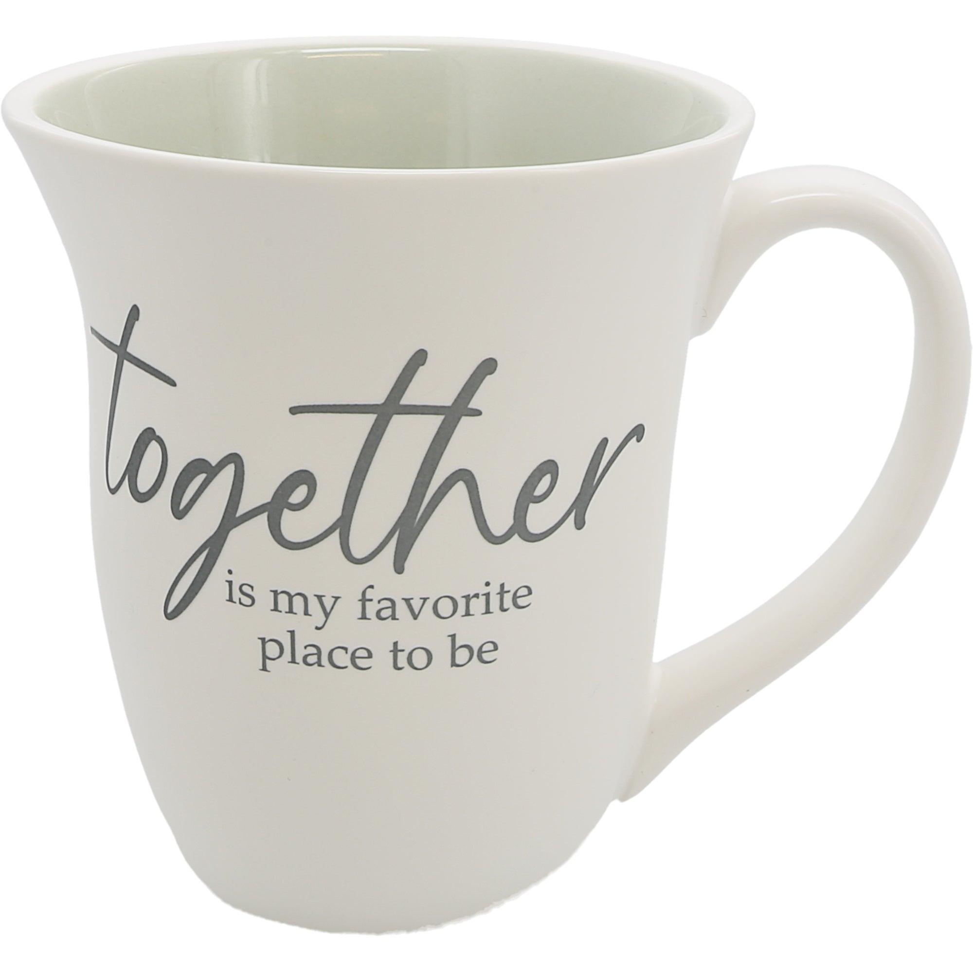 • IN-HOUSE DESIGN: The frontside features "Together Is My Favorite Place To Be" gray raised texture glossy words on the front center of the white cup with a light gray interior.